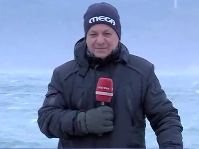 Ο αέρας είναι τόσο ισχυρός που κατάφερε «να πάρει και να σηκώσει» έναν ρεπόρτερ του Mega, την ώρα που βρισκόταν σε ζωντανή σύνδεση με το πλατό της εκπομπής Live. News.