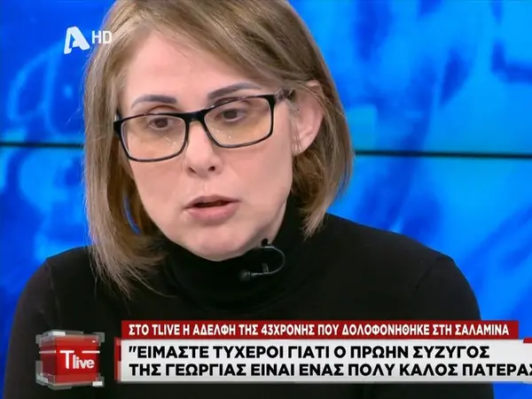 Στις δύσκολες στιγμές που βιώνει η ίδια και η οικογένειά της μετά τη δολοφονία της 43χρονης αδερφής της από τον 71χρονο γυναικοκτόνο στη Σαλαμίνα, αναφέρθηκε η αδερφή του τελευταίου θύματος έμφυλης βίας.
