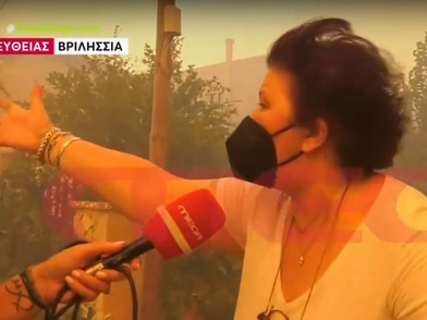 «Καθόμαστε μήπως και σώσουμε κάτι. Βλέπετε κουβάδες, λάστιχα, τα έχω πετάξει όλα έξω. Τα σπίτια καίγονται, τι να σας πω...», είπε η κάτοικος.