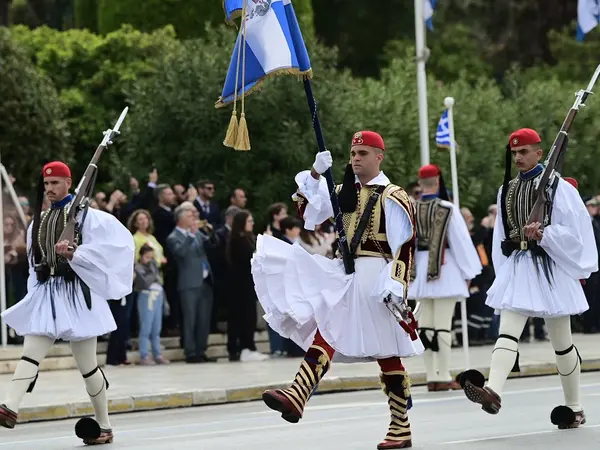 Ολοκληρώθηκε η μεγαλειώδης στρατιωτική παρέλαση για την 25η Μαρτίου 1821 στο Σύνταγμα, υπό την παρουσία της Προέδρου της Δημοκρατίας, Κατερίνας Σακελλαροπούλου, και εκπροσώπων της πολιτικής ηγεσίας της χώρας.