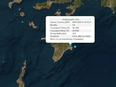 Σεισμός μεγέθους 3,9 βαθμών της κλίμακας Ρίχτερ σημειώθηκε τα ξημερώματα στη Ρόδο.
