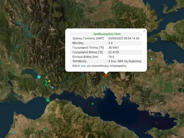 Μέτριος σε ένταση σεισμός στην περιοχή της Άμφισσας καταγράφηκε στις 11:04 το πρωί της Πέμπτης. Σύμφωνα με την αναθεωρημένη λύση του Γεωδυναμικού Ινστιτούτου, η ένταση του σεισμού είναι 3,9 Ρίχτερ.