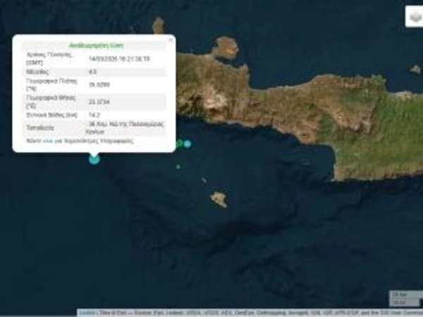 Σεισμική δόνηση μεγέθους 4,5 Ρίχτερ καταγράφηκε στην Παλαιόχωρα Χανίων, το απόγευμα του Σαββάτου.