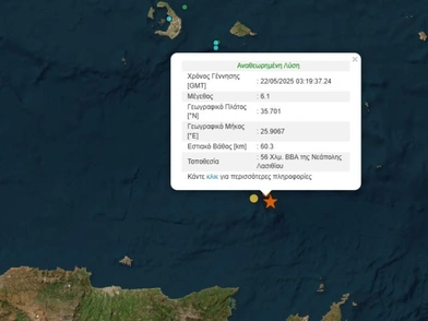 Ισχυρός σεισμός, μεγέθους 6,1 βαθμών της κλίμακας Ρίχτερ, σημειώθηκε στις 06:19 (ώρα Ελλάδας) ανοικτά της Κρήτης, προκαλώντας αναστάτωση στους κατοίκους.