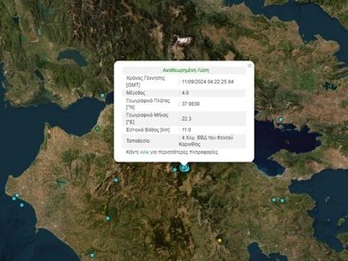 Σεισμός μεγέθους 4 βαθμών της κλίμακας Ρίχτερ σημειώθηκε στις 7:22 σήμερα το πρωί στην Κορινθία, σύμφωνα με το Γεωδυναμικό Ινστιτούτο του Εθνικού Αστεροσκοπείου Αθηνών.