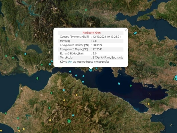 Σεισμός στην περιοχή της Φωκίδας καταγράφηκε στις 22:10 το βράδυ του Σαββάτου (12/10).