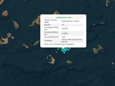 Σεισμός μεγέθους 4,6 βαθμών της κλίμακας Ρίχτερ σημειώθηκε μεταξύ Σαντορίνης και Αμοργού.