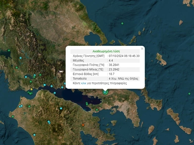 Σεισμός σημειώθηκε στις 9:18 στη Θήβα, ενώ έγινε αισθητός και στην Αθήνα.