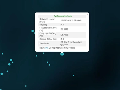 Το εστιακό βάθος του σεισμού στην Αμοργό είναι 5,9 χιλιόμετρα, ενώ το επίκεντρό του εντοπίζεται 11 χιλιόμετρα της Αρσεκίνης.