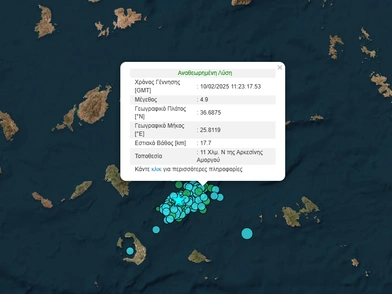 Σεισμός σημειώθηκε μεταξύ Σαντορίνης και Αμοργού. Η δόνηση έγινε αισθητή στην Αττική.