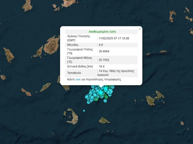 Σεισμός τώρα μεγέθους 4,9 βαθμών της κλίμακας Ρίχτερ σημειώθηκε και πάλι μεταξύ Σαντορίνης και Αμοργού.