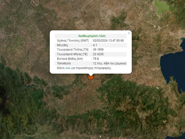 Σεισμός μεγέθους 3,9 βαθμών της κλίμακας Ρίχτερ σημειώθηκε πριν από λίγα λεπτά (στις 13:47) στη Φάρσαλα, με την αναθεωρημένη εκτίμηση του Γεωδυναμικού Ινστιτούτου να κάνει λόγο για 4,1 Ρίχτερ.