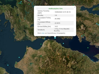 Το επίκεντρο του σεισμού ήταν 4 χιλιόμετρα νότια του Μαραθιά.