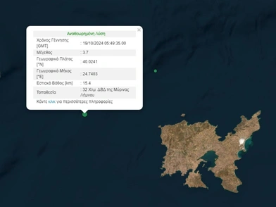 Σεισμός 3,7 της κλίμακας Ρίχτερ σημειώθηκε νωρίς το πρωί του Σαββάτου (19/10) στη θαλάσσια περιοχή της Λήμνου.