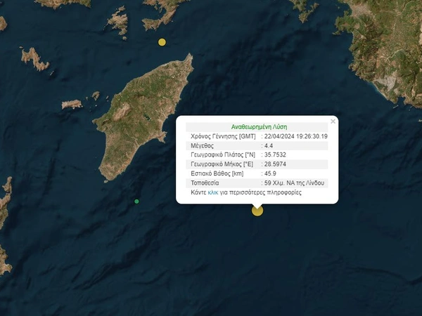 Το επίκεντρο του σεισμού εντοπίζεται 59 χιλιόμετρα νοτιοανατολικά της Λίνδου, ενώ το εστιακό βάθος υπολογίζεται σε 45,9 χιλιόμετρα.