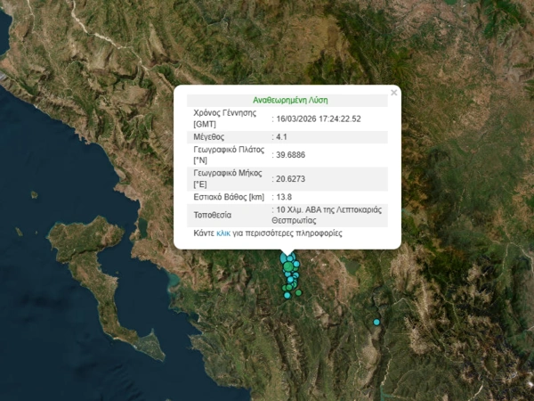 Σεισμός μεγέθους 4,1 βαθμών της κλίμακας Ρίχτερ σημειώθηκε στη Θεσπρωτία, προκαλώντας αναστάτωση στους κατοίκους της περιοχής.