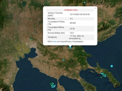 Σεισμός τώρα στις 23:39 το βράδυ της Τρίτης (12/11) στη Θεσσαλονίκη.