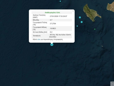 Σεισμός μεγέθους 4,7 βαθμών της κλίμακας Ρίχτερ σημειώθηκε στη Ζάκυνθο.