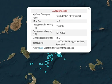 Το εστιακό βάθος του σεισμού στην Αμοργό υπολογίζεται στα 13,6 χιλιόμετρα, ενώ το επίκεντρο της δόνησης, όπως έγινε γνωστό από το Γεωδυναμικό Ινστιτούτο, εντοπίζεται στα 11 χιλιόμετρα νότια, νοτιοδυτικά της Αρσεκίνης.