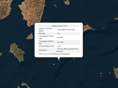 Σύμφωνα με την Αναθεωρημένη Λύση του Γεωδυναμικού Ινστιτούτου, η δόνηση σημειώθηκε περί τος 06.39 σήμερα (14/11), με εστιακό βάθος 14,4 χλμ. και επίκεντρο 15 χλμ νότια νοτιοδυτικά της Αρκεσίνης Αμοργού.