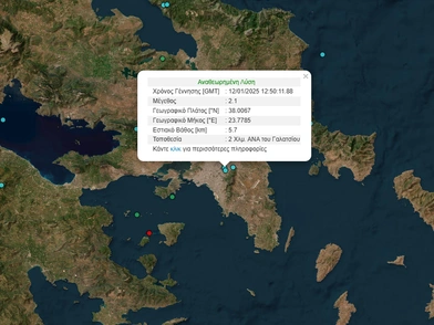 Σεισμός μεγέθους 2,1 βαθμών της κλίμακας Ρίχτερ σημειώθηκε στην Αθήνα και συγκεκριμένα στην ευρύτερη περιοχή του Γαλατσίου, ενώ η αρχική εκτίμηση ήταν στον Γέρακα.
