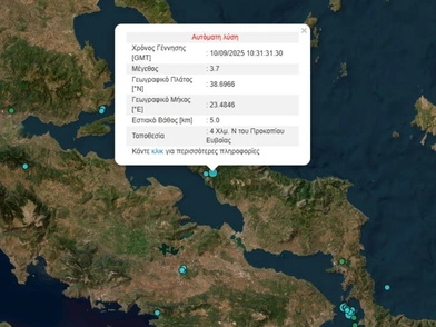 Σεισμός σημειώθηκε στις 13:31 στην Εύβοια μεγέθους 3,7 Ρίχτερ.