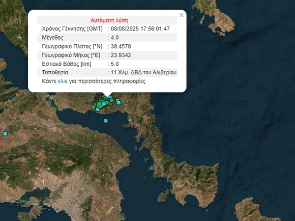 Παράλληλα το επίκεντρο του σεισμού ήταν τα 10 χιλιόμετρα Δυτικά - Βορειοδυτικά του Αλιβερίου.