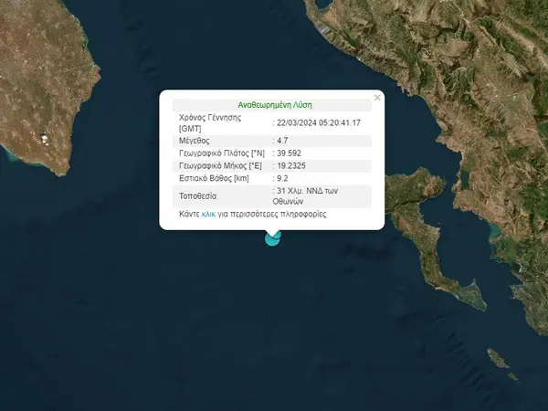 Σεισμός μεγέθους 4,7 βαθμών της κλίμακας Ρίχτερ ταρακούνησε την Κέρκυρα.