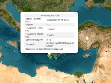 Σεισμός μεγέθους 4,2 Ρίχτερ σημειώθηκε το απόγευμα της Τετάρτης (20/8) στην Κρήτη.