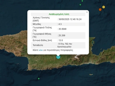 Μέτριος σε ένταση σεισμός στην περιοχή της Κρήτης καταγράφηκε στις 02:40 το μεσημέρι της Παρασκευής. Σύμφωνα με το σύστημα ενημερώσεων του Ευρωμεσογειακού και Γεωδυναμικού Ινστιτούτου, η ένταση της δόνησης είναι 4,3 Ρίχτερ.