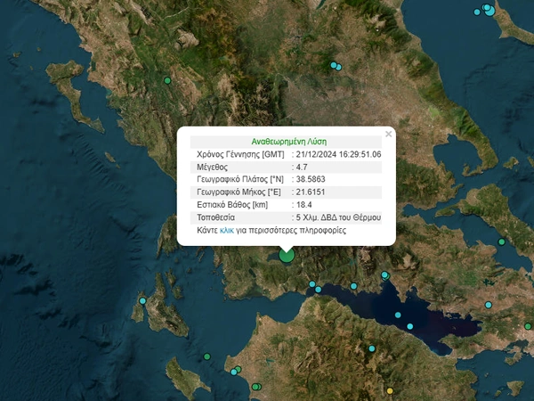 Σεισμός τώρα μεγέθους 4,7 βαθμών της κλίμακας Ρίχτερ σημειώθηκε στο Αγρίνιο, ενώ έγινε αισθητός στην περιοχή.