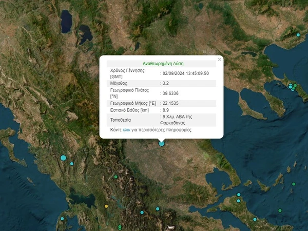 Σεισμός τώρα ταρακούνησε τη Φαρκαδόνα, ενώ, σύμφωνα με την αναθεωρημένη λύση του Γεωδυναμικού Ινστιτούτου του Εθνικού Αστεροσκοπείου Αθηνών, η δόνηση είχε μέγεθος 3,2 βαθμών της κλίμακας Ρίχτερ.