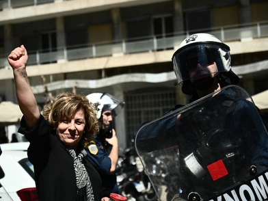 Η μητέρα του δολοφονηθέντος από τη Χρυσή Αυγή, Παύλου Φύσσα, ήταν μεταξύ των δεκάδων συγκεντρωμένων στο σημείο που ζητούσαν «δικαίωση» για το παιδί.
