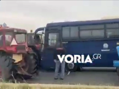 Όπως αναφέρει το voria.gr, όλα συνέβησαν στον κόμβο Πετριτσίου στις Σέρρες. Ο οδηγός της κλούβας της αστυνομίας κάνει αναστροφή, χτυπάει με ένα τρακτέρ και στη συνέχεια αναπτύσσει ταχύτητα.