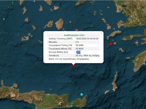 Σεισμός μεγέθους 3,9 βαθμών της κλίμακας Ρίχτερ σημειώθηκε στην Ανάφη το πρωί της Τρίτης.