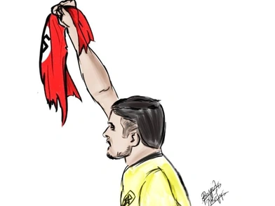 Στο facebook και συγκεκριμένα στη σελίδα του Βαγγέλη Χαντζή, δημοσιεύθηκε σκίτσο του τελευταίου στο οποίο έχει αντικαταστήσει το μαύρο περιβραχιόνιο που έδειξε ο μέσος της ΑΕΚ στο πέταλο των Bad Blue Boys, με μία σκισμένη σβάστικα, στέλνοντας ένα δυνατό αντιφασιστικό μήνυμα.