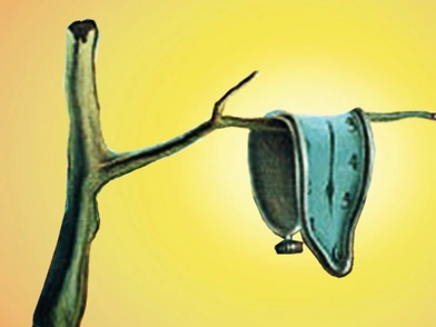 Το σκίτσο είναι εμπνευσμένο από το έργο του Σαλβαντόρ Νταλί με τα ρευστά ρολόγια, «Η εμμονή της μνήμης».
