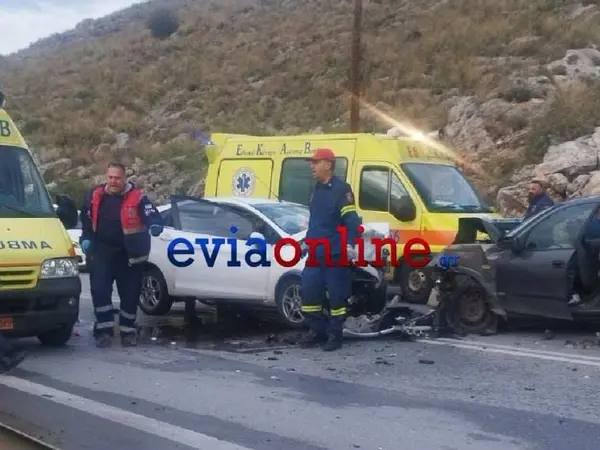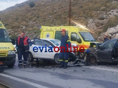 Μετωπική σύγκρουση δύο αυτοκινήτων σημειώθηκε το μεσημέρι του Σαββάτου (16/12) στον περιφερειακό δρόμο Νέας Λαμψάκου προς Βασιλικό, στην Εύβοια.