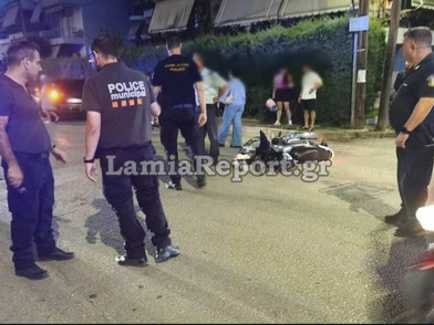 Σύμφωνα με το LamiaReport, το μηχανάκι με δύο νεαρά παιδιά αναβάτες, 16 και 18 ετών, παραβίασε stop και έπεσε με δύναμη πίσω δεξιά στο μαύρο SUV που κατέβαινε κανονικά στον δρόμο.