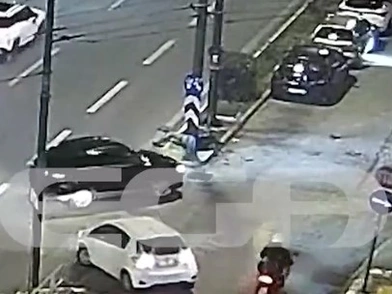 Όπως φαίνεται και στο βίντεο του Mega, εκείνη τη στιγμή έγινε η σφοδρή σύγκρουση, με τον οδηγό να πέφτει σε μια κολώνα