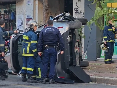 Όπως φαίνεται στα πλάνα του Orange Press Agency, αυτοκίνητο βγήκε εκτός πορείας και ανατράπηκε σε έναν από τους πιο κεντρικούς δρόμους της πρωτεύουσας.