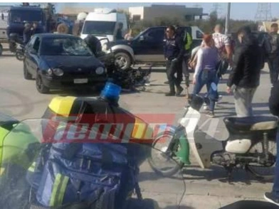 Σύμφωνα με το tempo24.news, το τροχαίο έλαβε χώρα το μεσημέρι στην οδό Ακρωτηρίου, κοντά στη συμβολή με τη Γλαύκου.