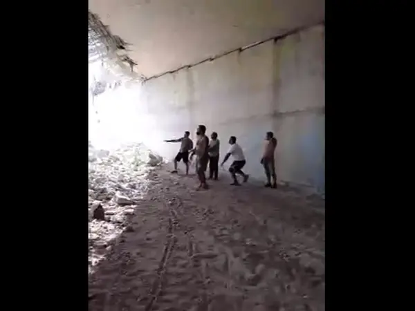Από το πάνω μέρος πέφτουν μπάζα την ώρα που οι άνθρωποι που βρίσκονται κάτω από τη γέφυρα παρακολουθούν φοβισμένοι, ενώ κάποιος άλλος μαζεύει τα σίδερα που έχουν καταρρεύσει.