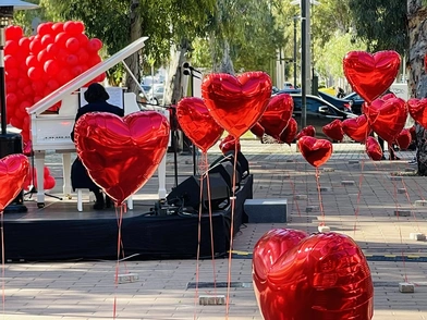 Ο "Δρόμος των Ποιητών" στην Λαμπράκη, γεμάτος κόκκινα μπαλόνια, με μελωδίες από σπουδαστές και καθηγητές του Ωδείου της πόλης μας και με μια μοναδική ερμηνεία αύριο το βράδυ από την υπέροχη Ιωάννα Σεβοπούλου. Ερωτευμένους και μη, μικρούς και μεγάλους, σας περιμένουμε όλους σε μια διήμερη, ανοιχτή, υπαίθρια γιορτή αγάπης».