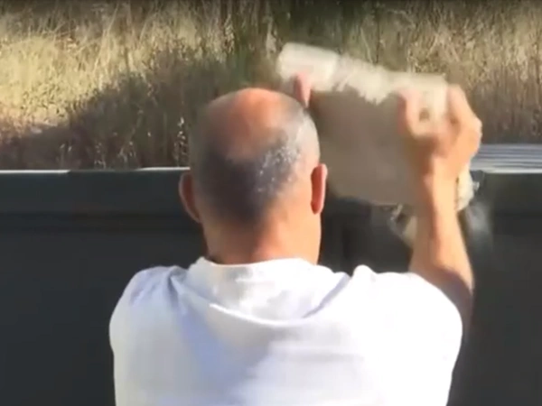 Όπως φαίνεται στο βίντεο που παρείχε ο ΣΚΑΙ, ο κάτοικος προσπαθεί απεγνωσμένα με μία ογκώδη πέτρα να σπάσει το λουκέτο της πύλης του γηπέδου, για να έχουν πρόσβαση οι δυνάμεις της πυροσβεστικής.