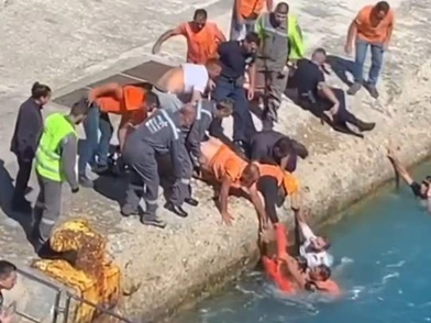 Εξετάζεται, μάλιστα, πως είτε το παραπάτησε είτε οι ισχυροί άνεμοο την παρέσυραν. Για καλή της τύχη, στο σημείο υπήρχε ο ύπαρχος του πλοίου, ένας λιμενικός και ένας καβοδέτης, οι οποίοι βούτηξαν στη θάλασσα και έβγαλαν σώα τη γυναίκα, η οποία είναι καλά στην υγεία της.