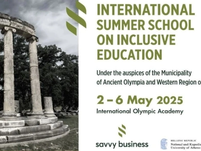 Από τις 2 έως τις 6 Μαΐου 2025, στον ιστορικό χώρο της Διεθνούς Ολυμπιακής Ακαδημίας, δίπλα στον αρχαιολογικό χώρο της Αρχαίας Ολυμπίας, θα πραγματοποιηθεί το 1ο Διεθνές Θερινό Σχολείο για την Ενταξιακή Εκπαίδευση, με τίτλο: “International Summer School on Inclusive Education: Inclusion theory and best practices through a transdisciplinary context”.