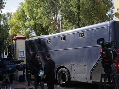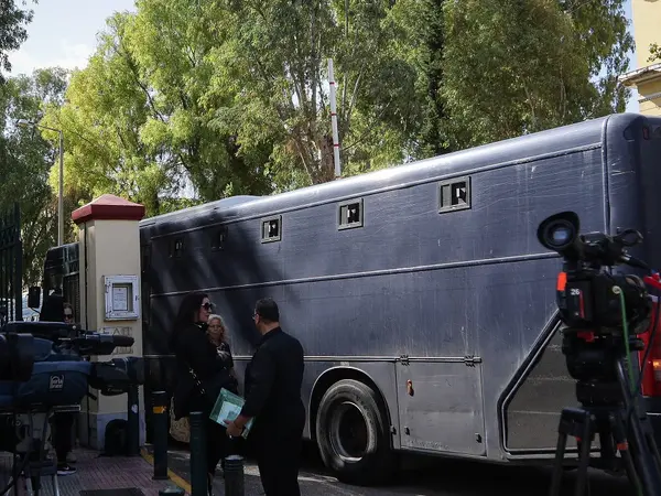 Ο κατηγορούμενος έφθασε με «κλούβα» μεταγωγής, στην οποία βρίσκονταν και άτομα από άλλες υποθέσεις. Κατέβηκε πρώτος από το λεωφορείο φορώντας χειροπέδες και οδηγήθηκε από τους αστυνομικούς στο κτίριο.