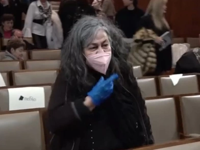 Η Ελένη Λουκά μπήκε στην αίθουσα με ιατρική μάσκα και χειρουργικά γάντια και άρχισε να βρίζει τον πρώην πρόεδρο του ΣΥΡΙΖΑ και νυν επικεφαλής του Κινήματος Δημοκρατίας.