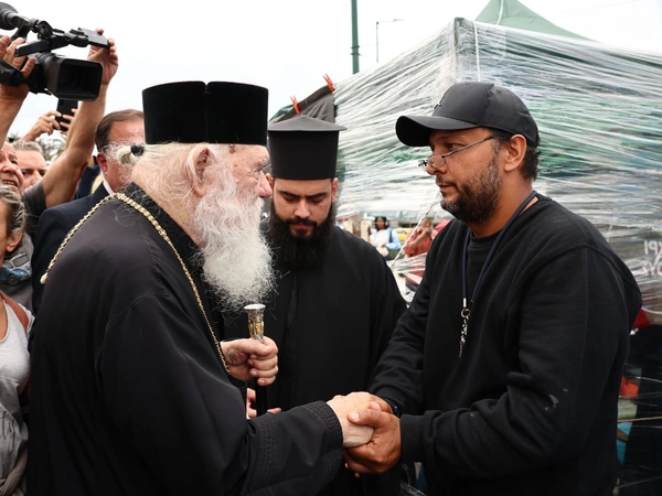 Ο Αρχιεπίσκοπος Ιερώνυμος επισκέφθηκε τον απεργό πείνας Πάνο Ρούτσι στο Σύνταγμα για να εκφράσει τη στήριξή του.